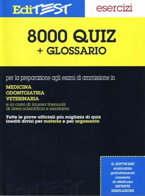 Per la preparazione agli esami di ammissione in: Medicina Odontoiatria Veterinaria e ai corsi di laurea triennali di area scientifica e sanitaria Tutte le prove ufficiali più di migliaia di quiz inediti divisi per materia e per argomento. Descrizione Il volume contiene 8000 quiz di logica e cultura generale, biologia, chimica, matematica e fisica (tutte le prove ufficiali e migliaia di quiz inediti), più un ricco glossario con la definizione di centinaia di termini scientifici e medici. I quiz sono ripartiti per materia e per argomento per consentire uno studio sistematico e permettere di individuare più agevolmente gli argomenti in cui si è più deboli. Sommario 1. Logica e Cultura generale 2. Matematica 3. Fisica 4. Chimica 5. Biologia Glossario