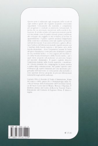 Questo testo è indirizzato agli insegnanti delle scuole di ogni ordine e grado che vogliano acquisire conoscenze riguardanti l’«educazione alla teatralità» e competenze per progettare e condurre un intervento laboratoriale. Si pensa che sia necessario incentivare nella scuola la formazione di un’idea relativa all’esperienza teatrale poiché si è riscontrato come la pratica teatrale possa contribuire allo sviluppo dei soggetti in età evolutiva ed in fase di apprendimento. Il primo capitolo analizza l’importanza della creatività e sottolinea come tale aspetto sia favorito dall’attività teatrale. Il secondo ed il terzo capitolo affrontano l’utilizzo del laboratorio teatrale rispettivamente con i bambini della Scuola materna e del primo ciclo della Scuola elementare – dove l’esperienza assume la forma del gioco drammatico come percorso strutturato a partire da una modalità ludica – e con i ragazzi del secondo ciclo della Scuola elementare e della Scuola media – per i quali viene proposto ed analizzato un percorso basato sul racconto drammatico. Il quarto capitolo descrive l’esperienza teatrale nella Scuola superiore, considerando i diversi elementi che compongono la prassi scenica a partire dalla comunicazione. Nel quinto capitolo sono evidenziati gli aspetti essenziali per una necessaria progettualità dell’intervento di «educazione alla teatralità» e sono riportate diverse proposte di percorsi laboratoriali realizzabili negli ambiti analizzati.
